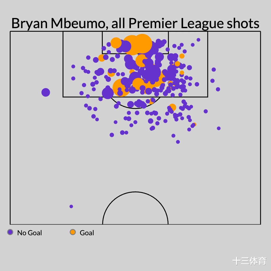 {26 A Nhìn bề ngoài, họ dường như là những người ghi bàn Premier League thứ tư và thứ tám. Nhưng nếu họ sử dụng tỷ lệ chuyển đổi bắn trung bình trong năm mùa đầu tiên được khôi phục, họ chỉ có thể ghi được khoảng 12 bàn và 8 bàn tương ứng. Hơn nữa, Mbeumo đã bị phạt và đá phạt tại Brentford, và những cơ hội này tại Manchester United về cơ bản là phí B.