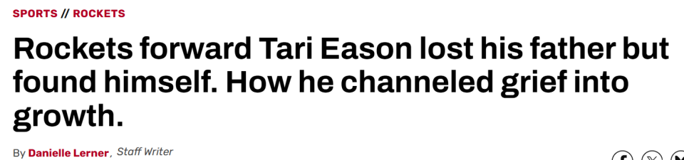 Ngày 9 tháng 11, tờ "Houston Chronicle" đưa tin một bài viết dài về câu chuyện của cầu thủ Ethan của Rockets. Tám tháng trước, anh vừa mất cha. Giờ đây, anh đã biến nỗi đau thành sức mạnh, với nhiều thống kê đạt đỉnh cao trong sự nghiệp. Sau đây là nội dung chính của báo cáo -