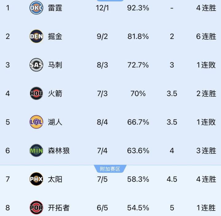 Vào ngày 13 tháng 11, mùa giải NBA thường niên đã kết thúc nhiều trận đấu. Về phần các đội Western Conference, trận đấu của Grizzlies đã kết thúc trước. Họ thua Celtics trên đường với tỷ số 95-131. Jackson của Grizzlies ghi được 18 điểm, Pritchard của Celtics có 24 điểm, 6 rebound và 9 kiến tạo, còn White có 20 điểm, 5 rebound và 4 kiến tạo. Trong các trận đấu khác, khi Nuggets đánh bại Clippers với chuỗi 6 trận thua, Lakers đã đánh bại Thunder với 29 điểm, Warriors lội ngược dòng ngoạn mục và bảng xếp hạng Western Conference đã được cập nhật.